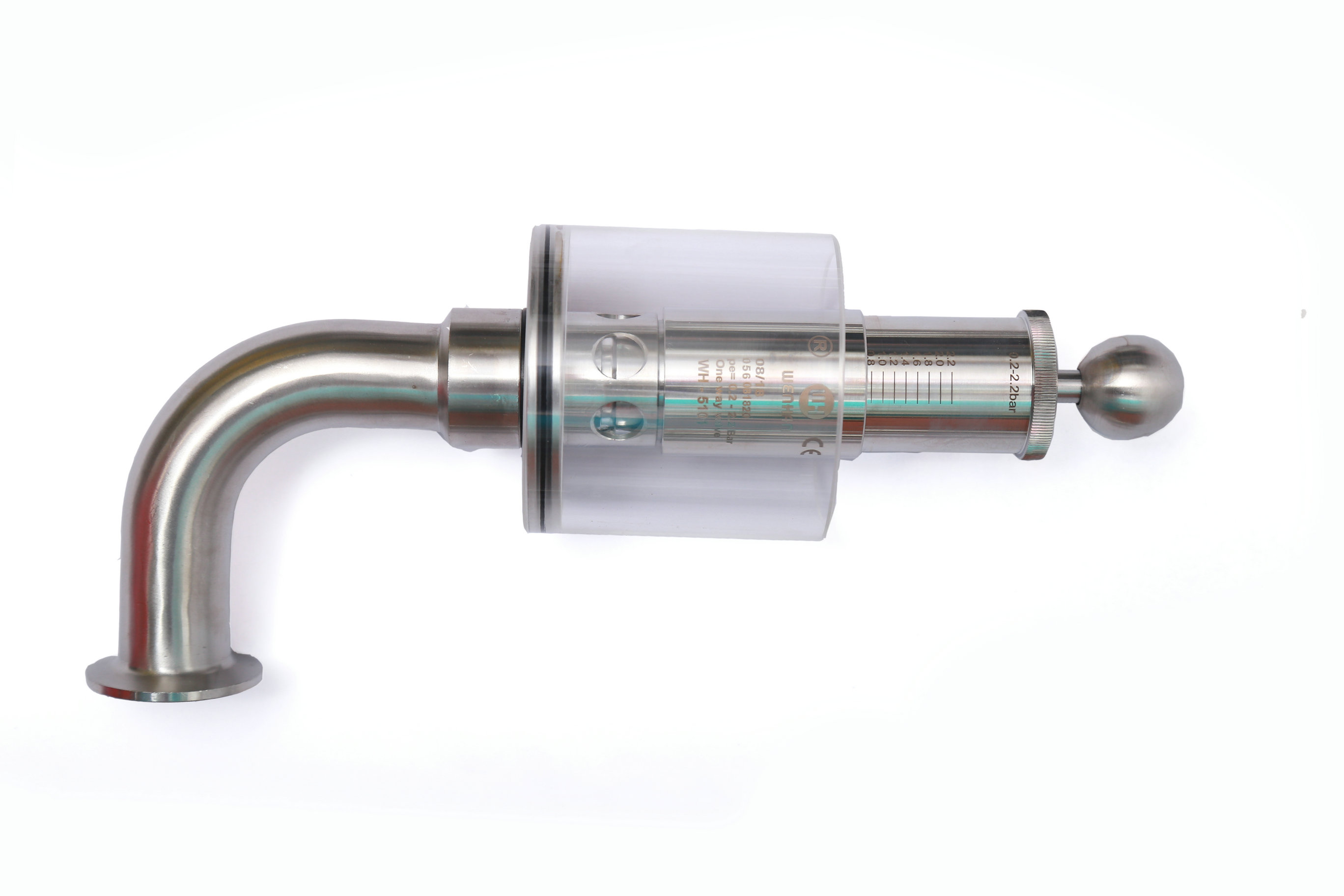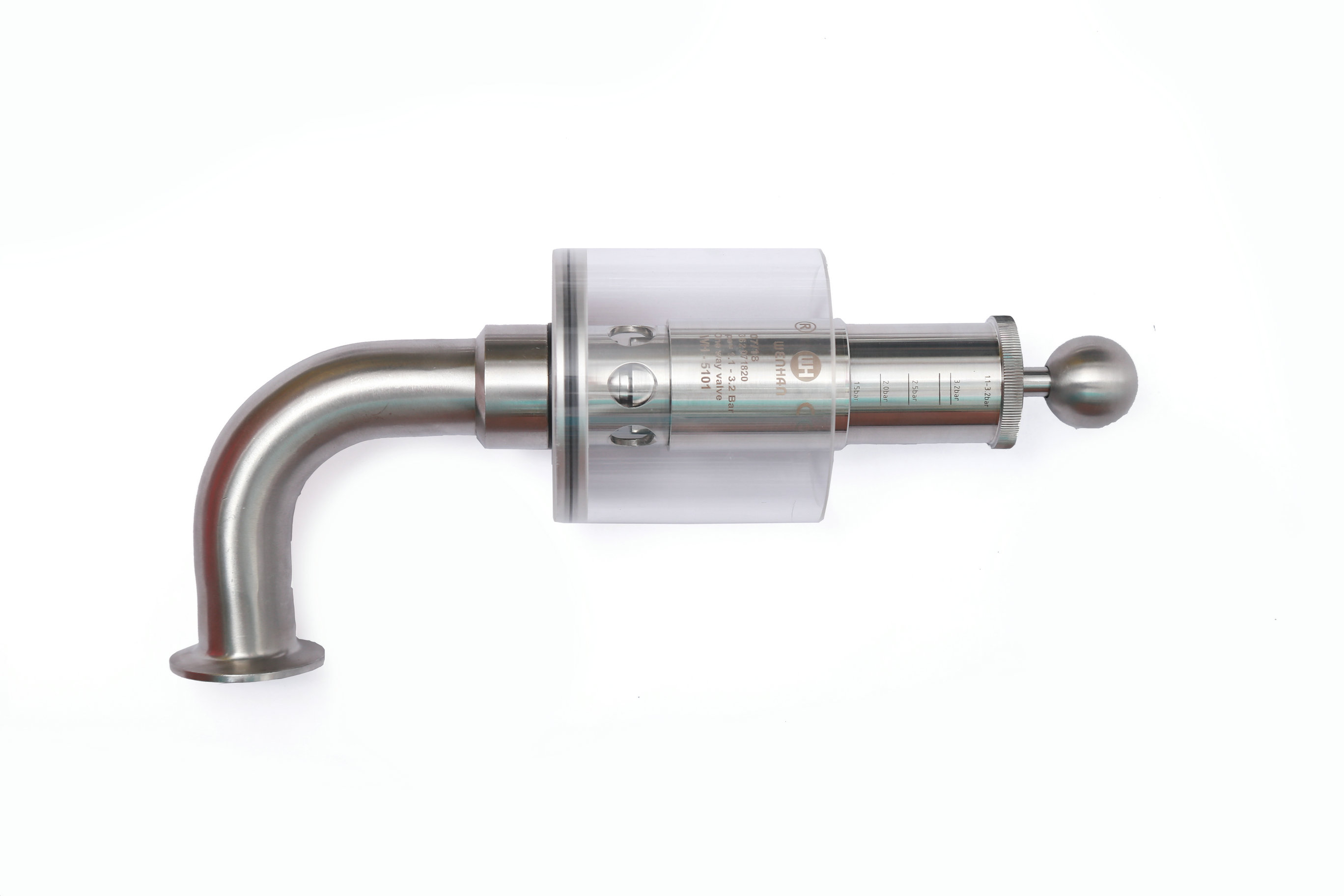 Wh-5101E 鏈接;快裝,卡箍。管徑;彎頭Φ32*1.5 . 內(nèi)部設計壓力;由彈簧控制. 工作介質(zhì);氣體。手動式,旋鈕調(diào)節(jié)刻度壓力。
